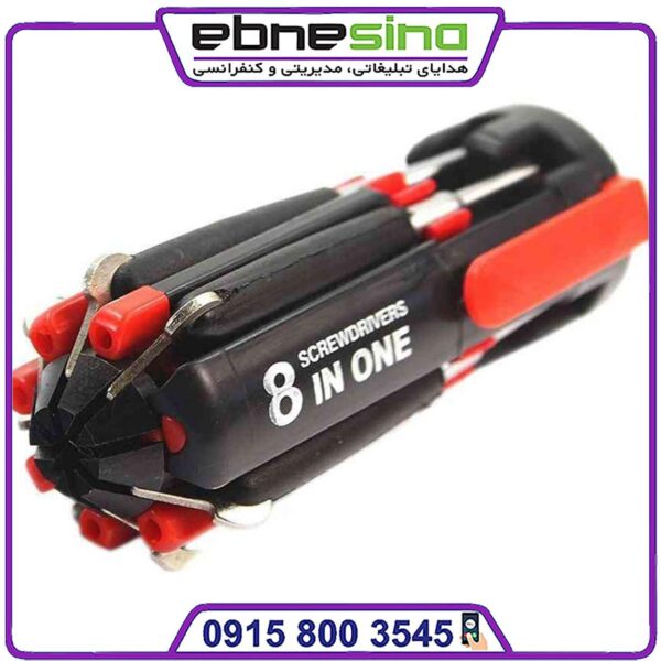 آچار 8 کاره همراه با پرژکتور LED شامل 8 نوع آچار مختلف است که برای طیف وسیعی از کارهای تعمیراتی طراحی شدهاند. این آچارها شامل آچارهای ششگوش، آچار فرانسه و دیگر انواع مورد نیاز برای پیچ و مهرههای مختلف هستند. همه این آچارها بهصورت تاشو در یک دستگاه کوچک و قابل حمل جمع شدهاند.