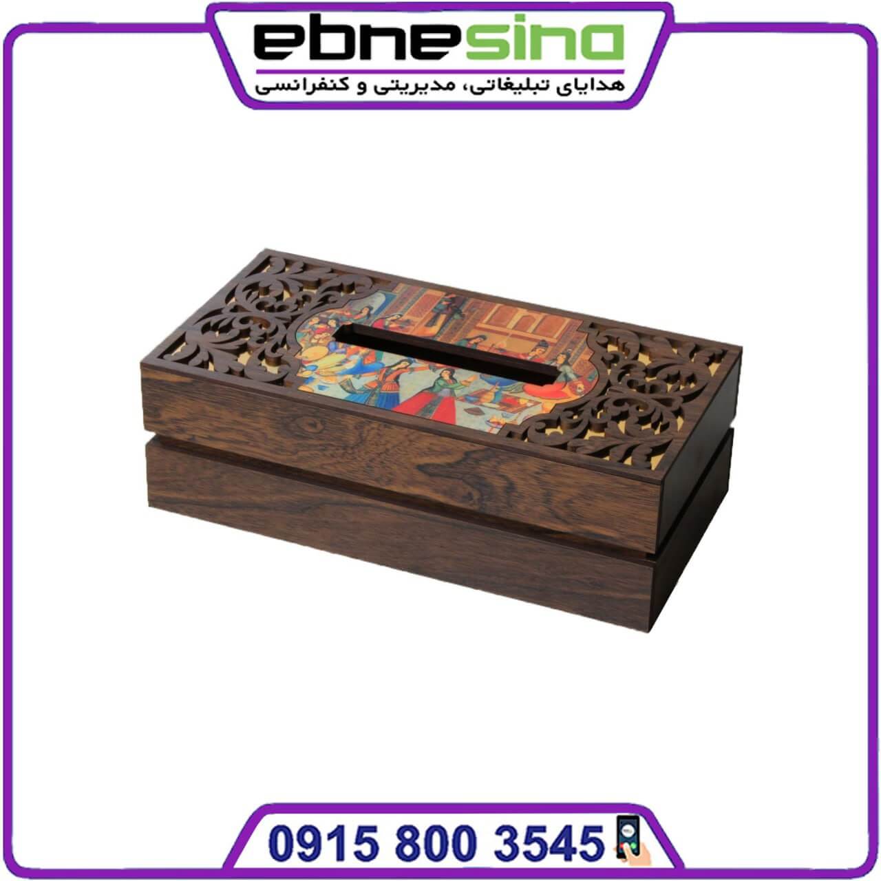 جعبه دستمال کاغذی چوبی طرح دار و نمایشگاهی