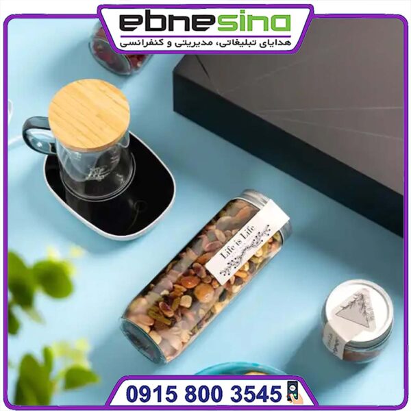 - شیشه دمنوش و میوه خشک: برای نگهداری و پذیرایی از دمنوشهای طبیعی و میوه خشک، با درپوش محکم و ظاهر زیبا.