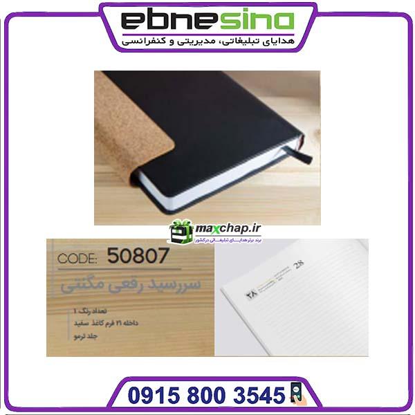 سررسید رقعی لوکس 50807 با طراحی لوکس، ابعاد رقعی (تبلتی) و قفل معمولی، انتخابی ایدهآل برای مدیران، کارمندان و مشتریان ویژه است. این سررسید هم ابزار کاربردی برای یادداشت و برنامهریزی است و هم هدیه تبلیغاتی با ارزش و تاثیرگذار برای برند شما محسوب میشود.