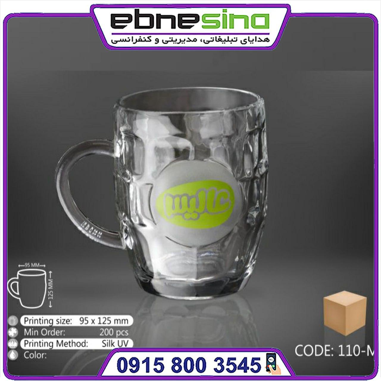 لیوان شیشه‌ای دسته دار کد 110 یکی از محبوب‌ترین انتخاب‌ها در میان محصولات تبلیغاتی است. این لیوان با طراحی شیشه‌ای زیبا و دسته محکم، علاوه بر ظاهر شیک، کارایی بالایی هم دارد. استفاده از شیشه طرح‌دار در بدنه، جلوه‌ای خاص و متفاوت به این لیوان داده است. قابلیت چاپ سیلک UV نیز امکان درج لوگو یا طرح‌های تبلیغاتی شما را فراهم می‌کند تا برندتان همیشه در معرض دید مخاطبان قرار گیرد.